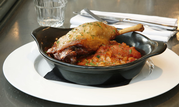 The merguez, chickpeas and harissa sounded pedestrian, but the hunks of spicy lamb sausage and chickpeas were swimming in a garlicky, lemon zesty, oily mess that was crying to be scooped up with yet more baguette. At this point we realised that if we were to make it to pudding, there would be no room for actual starters, let alone saucisson sec and rillettes, or the enticing Calvados camembert.