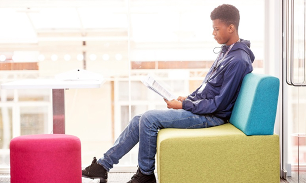 One of the most exciting projects for NewVIc has been creating an environment with flexible spaces and plenty of natural light to support a range of activities. These include performing, studying, working in groups as well as socialising. With 2 years of construction work, NewVIc’s glass front Learning Resource Centre, Café and Theatre have become the ‘’face’’ of the college on Prince Regent Lane.