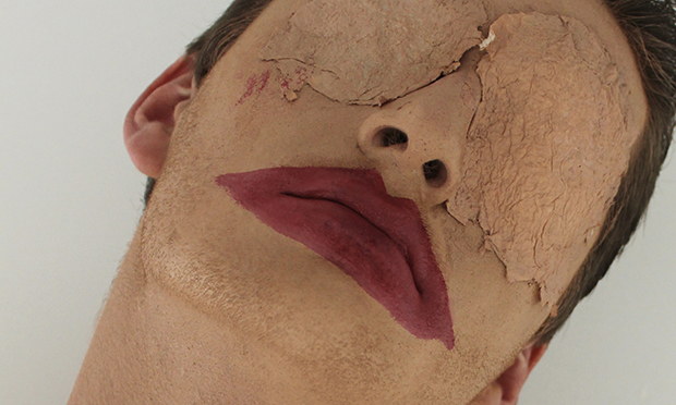 Two of the photos are self-portraits. Grandmother, mother, here I am as you dreamed me shows Rouxel with bloated Joker-esque lips, recalling many a drag queen stereotype, and some kind of clay or congealed makeup completely covering his eyes.