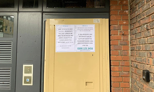 Over the weekend, a notice was displayed on the front door to the building offering information and support to affected residents, however the telephone number was related to an emergency repairs team.