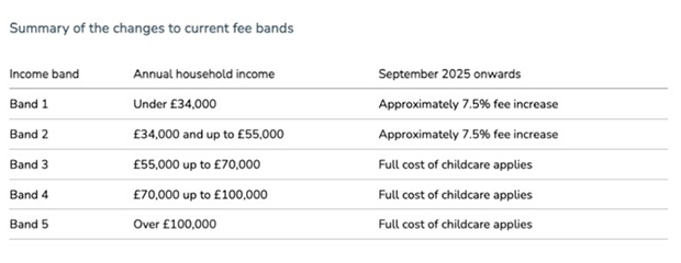 The Town Hall has said the fee changes have been timed to take place at the same time the government’s expansion of free childcare for eligible parents will take effect, limiting the impact on families.